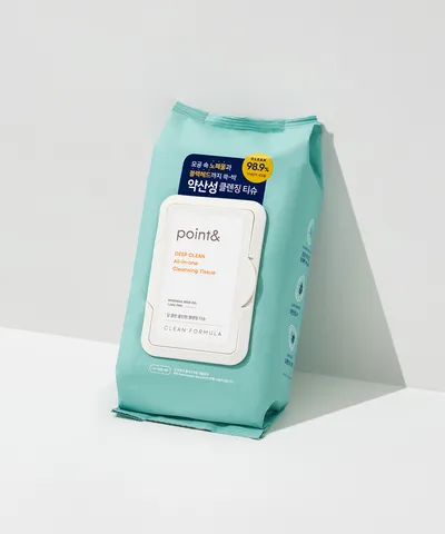 글로우픽과 화해 모두에서 높은 순위를 차지한 녹두 약산성 클렌징 워터 티슈는 약산성 포뮬러로 자극 없이 부드러운 클렌징이 가능합니다. 100매(20매 ×5개) 세트로 15,000원에 구매 가능한 이 제품은 지성피부에서도 pH 밸런스를 유지해 줍니다. - 포인트앤 딥 클린 올인원 클렌징 티슈